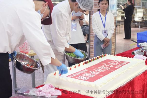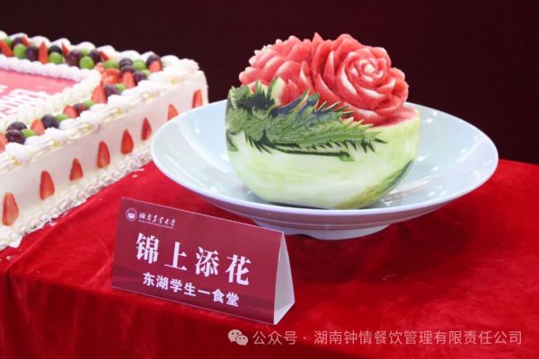 我司還特意邀請了知名品牌《鷺島面包》的師傅們來現(xiàn)場制作廚神爭霸賽專屬蛋糕,由楊海軍廚師長現(xiàn)場雕刻西瓜,寓意龍鳳呈祥,為本次活動錦上添花!各餐飲公司也都拿出了自己的拿手菜,我司準(zhǔn)備了創(chuàng)意十足的荷塘鳴蛙,來進(jìn)行美食展示,一起熱烈慶祝本次廚神爭霸賽活動!